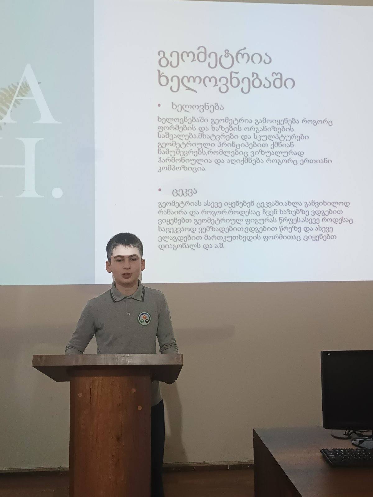 მოიძიეს ინფორმაციები გეომეტრიის როლზე არქიტექტურაში,ასევე ძალიან საინტერესოდ ჰქონდათ წარმოდგენილი პირადი გამოცდილებები თუ როგორ იყენებენ და ხედავენ გეომეტრიის როლს ფეხბურთსა და ცეკვაში, წარმოადგინეს პრეზენტაციები ამ თემებზე.