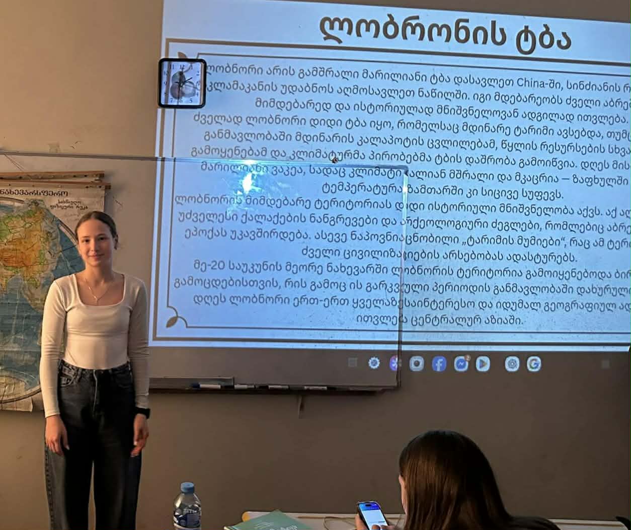 8 (დ) კლასის მოსწავლეებმა გეოგრაფიის გაკვეთილზე წარმოაჩინეს მრავალმხრივი და საინტერესო პრეზენტაციები აზიის ტბებზე. მათ ტბები წარმოაჩინეს არა მხოლოდ, როგორც ბუნებრივ-რეკრეაციული ობიექტები, არამედ როგორც ისტორიული, კულტურული და ეკონომიკური მნიშვნელობის სივრცეები. განიხილეს აზიის ძველი ტიბეტში მითოლოგიის ტბები, როგორც სარიტუალო და კულტურული სივრცეები. სადაც ასევე გადიოდა ძველი აბრეშუმის გზა და წარმოადგენდა ძველი სავაჭრო გზის ნაწილს. მოსწავლეებმა წარმატებით წარმოაჩინეს ტბების ეკოლოგიური პრობლემები, რომლებიც არამარტო რეგიონალური, არამედ გლობალური კატასტროფაცაა. აქტივობამ ხელი შეუწყო კვლევითი უნარების ანალიზის და ბუნებრივი რესურსების დაცვის მნიშვნელობას.