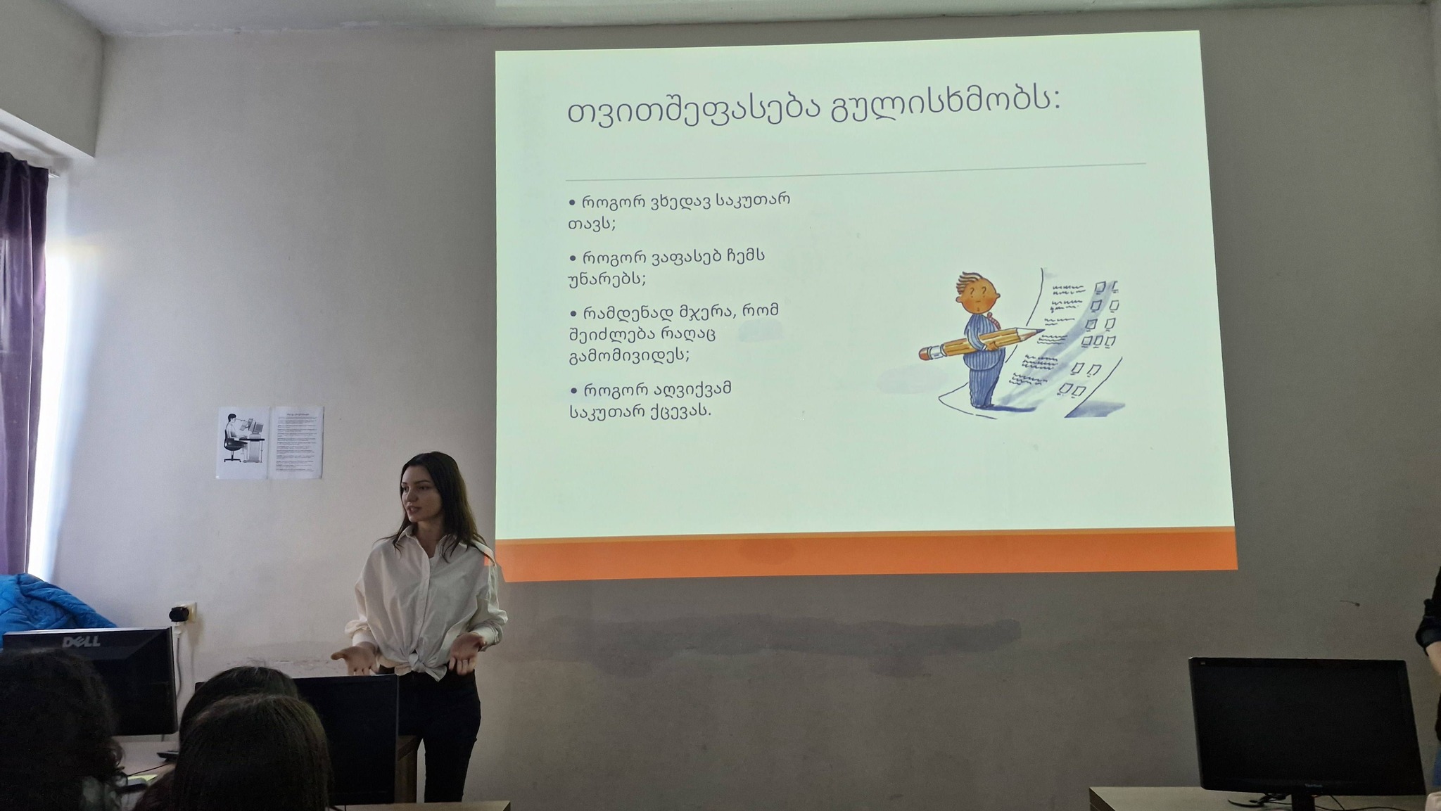 ჩვენს სკოლაში მე-10 კლასის მოსწავლეებს სტუმრად ჰყავდათ ფსიქოლოგი, რომელმაც ისაუბრა ერთ-ერთ მსნიშვნელოვან საკითხზე -თვითშეფასება. დისკუსია წარიმართა ძალიან საინტერესოდ და აქტიურად. მოსწავლეებმა ისაუბრეს საკუთარ გამოცდილებაზე.
